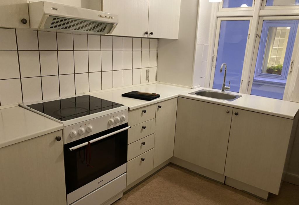Godt funktionelt køkken med viktorial rum. God størrelse badeværelse